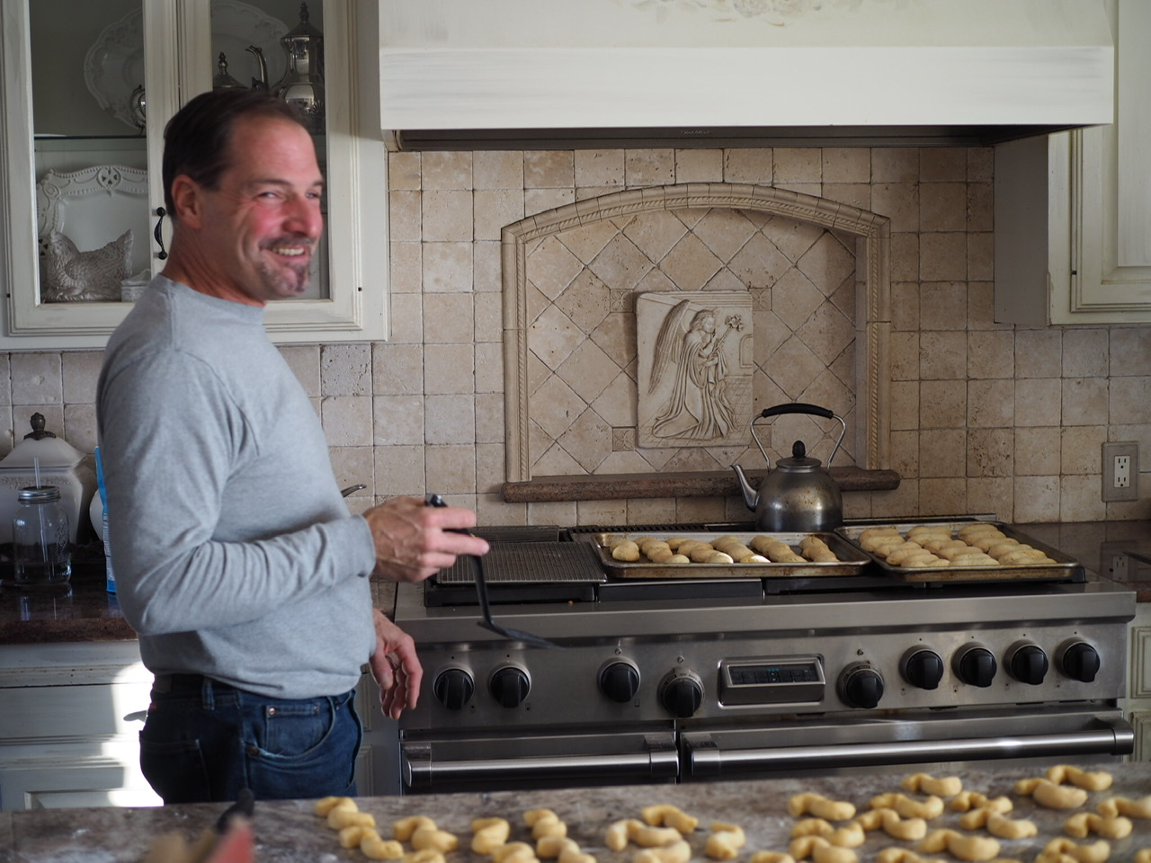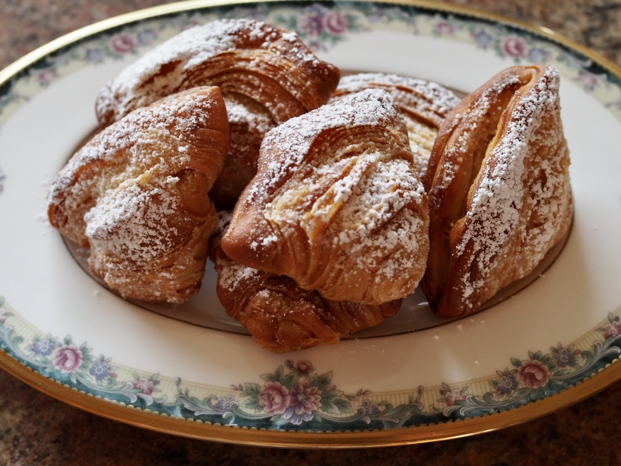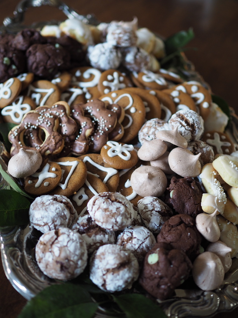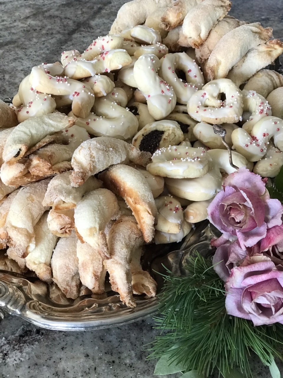 Our repertoire grew each year as I added recipes from family, neighbors, friends, trips to Italy, magazines and cookbooks. Brandied fruit and chocolate filled cuccidati, apricot filled croissants, various biscotti, almond drops, chocolate spiced cookies, sfoglitelli, and “S” cookies (we made “O’s” too.)